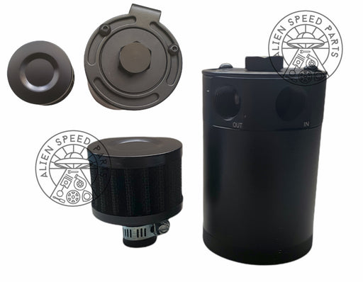 Alien Speed PartsIn stockHere we have our Billet Catch Can Kit with Fittings in black.Kit incudes 1 x Billet Aluminum Oil catch can 200ml -Black 1 x Black filter1 x Fully a...