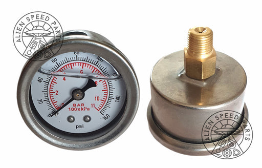 Alien Speed PartsIn stockWe have for sale one fuel pressure gauge reading from 0-160 psi, oil filled with white face which is universal and suited to 1/8 NPT thread size. T...