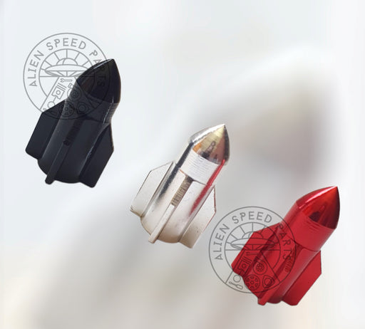 Alien Speed PartsIn stockHere we have 1 set of 4 x Rocket / Spaceship valve cap covers.Choose from either Black, Red or Silver.These detailed Rocket / Spaceships are sure t...